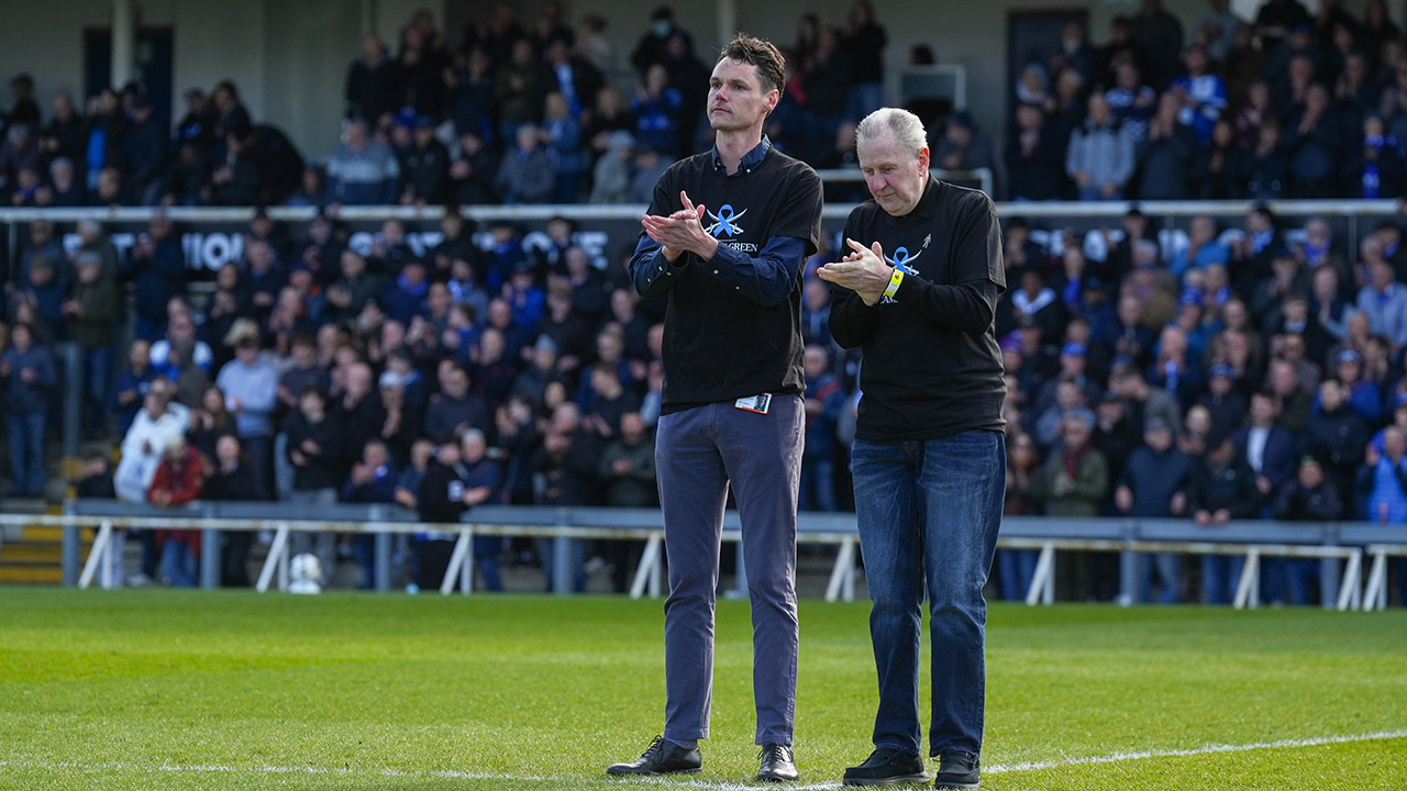 The men’s first team showed their support for The John Green Campaign too, wearing specially-made shirts throughout their pre-match warm-ups before gifting these to supporters in the crowd at The Mem.